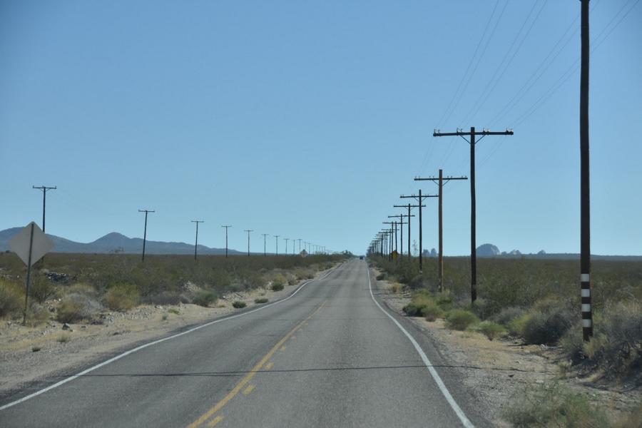 Wir stellten uns vor, dass wir bald in ein Dorf oder kleine Stadt namens Joshua Tree kommen, wo ein Wohnhaus am anderen steht, wie das halt so üblich ist. Und tatsächlich sahen wir bald die Wegweiser zu der Ortschaft Joshua Tree. Aber wo sind denn die Wohnhäuser? Na ja, die müssen bald kommen…. Stattdessen hörte der Asphaltbelag auf und wir befanden uns auf dieser Strasse: